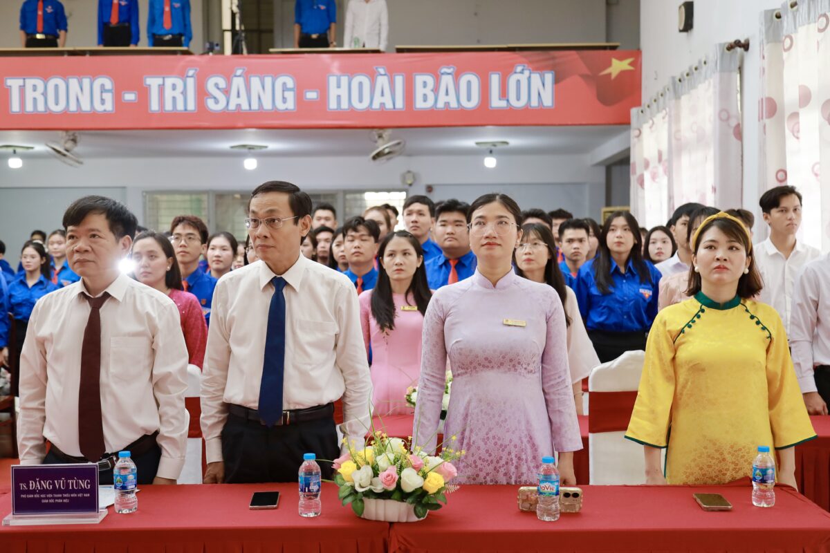 Thầy trò Phân hiệu đã cùng thực hiện nghi thức chào cờ, hát Quốc ca, lắng nghe phát biểu, đánh trống Khai giảng năm học 2025 – 2026 của Tổng Bí thư Tô Lâm và Bộ Trưởng Bộ GD&ĐT triển khai nhiệm vụ năm học 2025 – 2026.