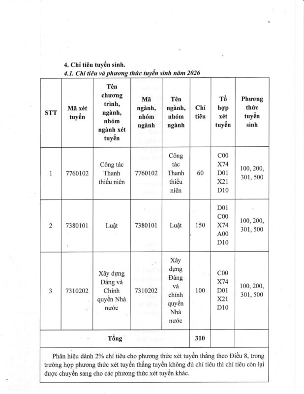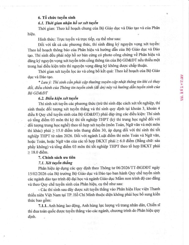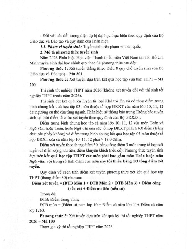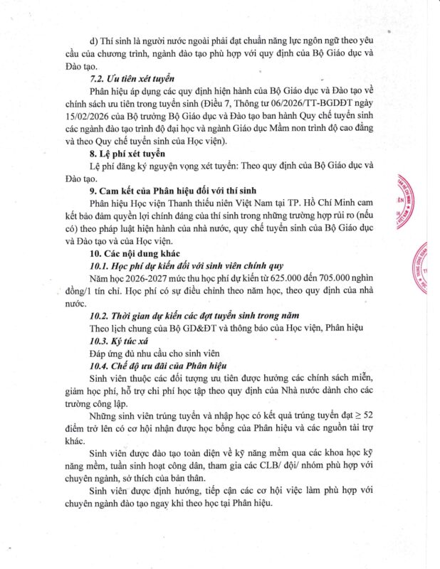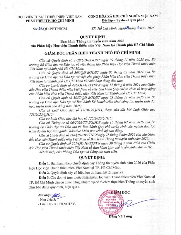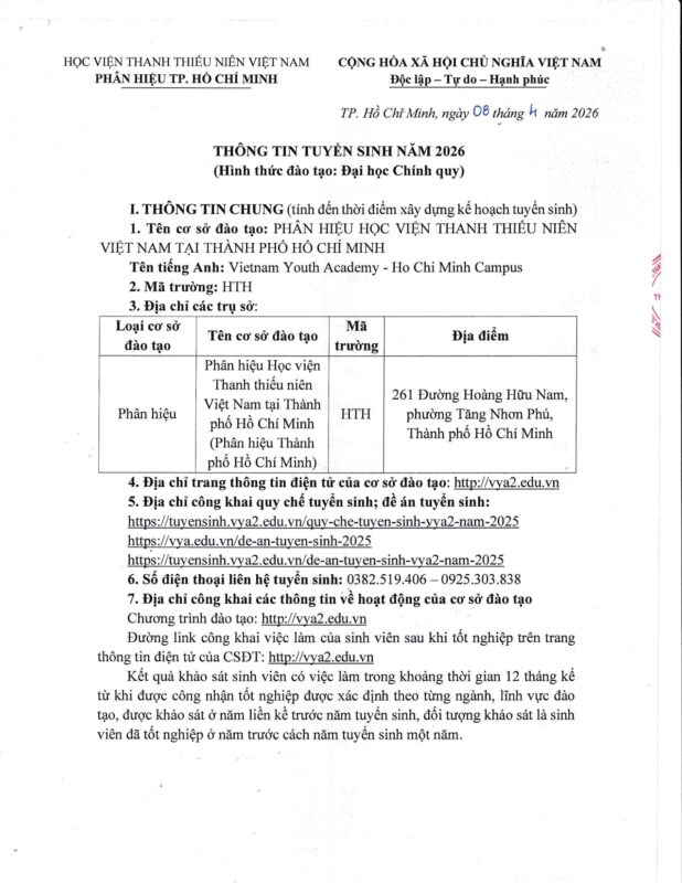 THÔNG TIN TUYỂN SINH NĂM 2026 – PHÂN HIỆU HỌC VIỆN THANH THIẾU NIÊN VIỆT NAM TẠI TP. HỒ CHÍ MINH